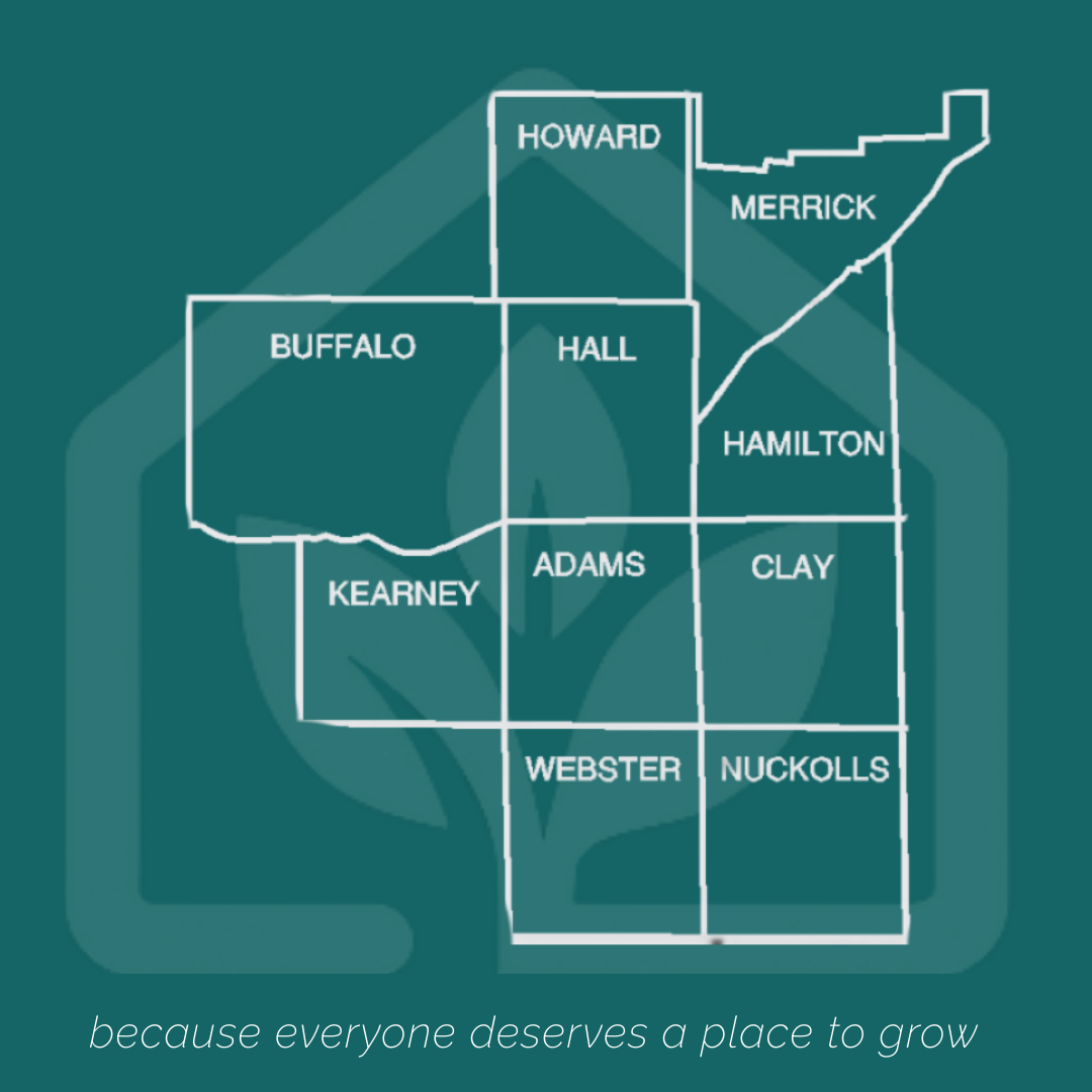Our programs and services support residents throughout central Nebraska, serving Adams, Buffalo, Clay, Hall, Hamilton, Howard, Kearney, Merrick, Nuckolls, and Webster Counties.